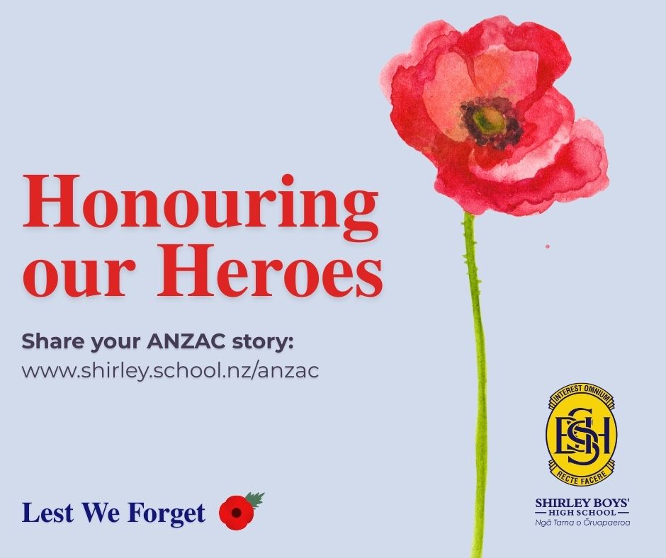 As ANZAC Day approaches, Shirley Boys’ High School invites whānau to contribute photos and information about family members who have served in ANZAC forces since 1915. Please submit your photos and details by 3pm, Monday 30 March, to be included in a special presentation at the school’s ANZAC assembly and on social media.